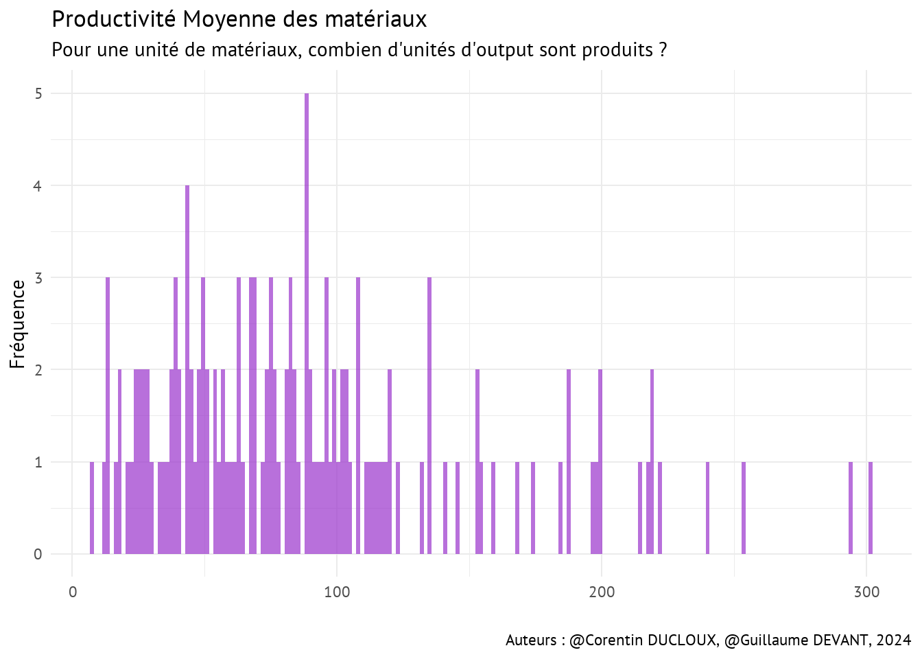 avec une productivité moyenne minimale de 8.22 unités d’output pour une unité de matériaux et jusqu’à 301.43 unités d’output pour une unité de matériaux.