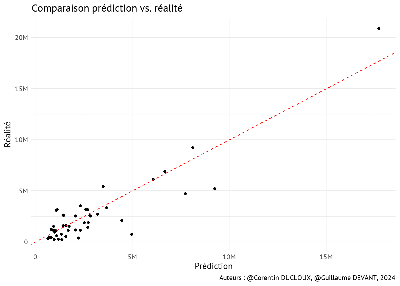. Les points correspondent aux données réelles.