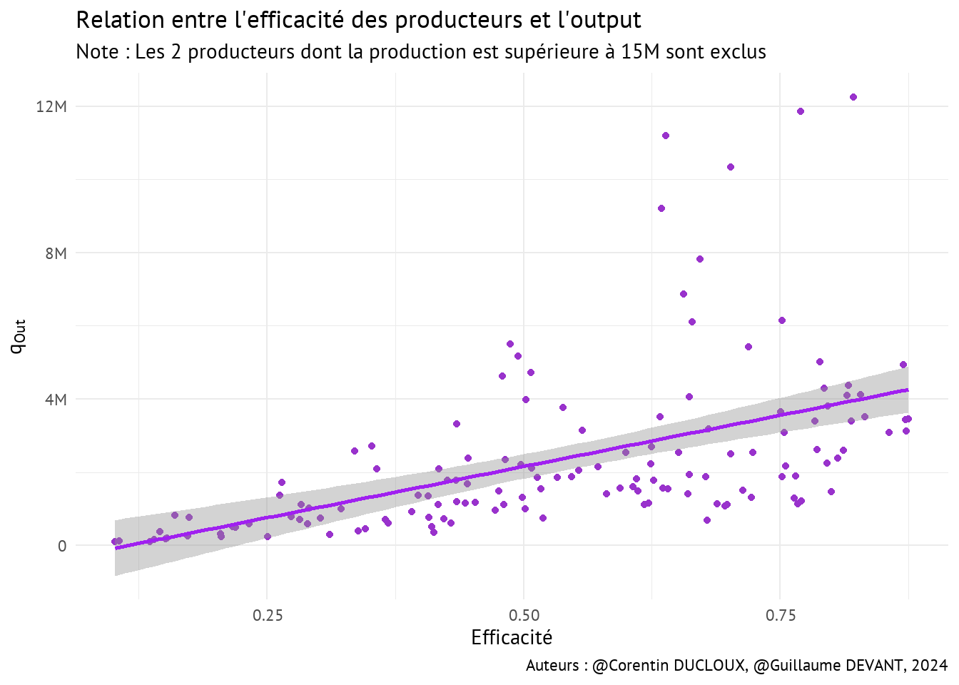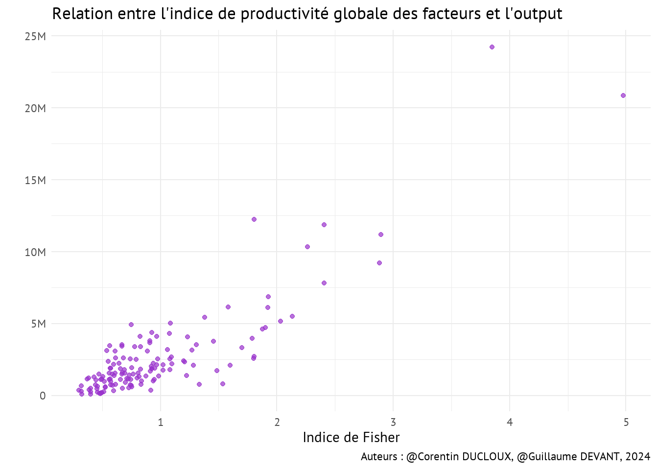 Essayons maintenant de comprendre comment les productivités moyennes individuelles sont corrélées :