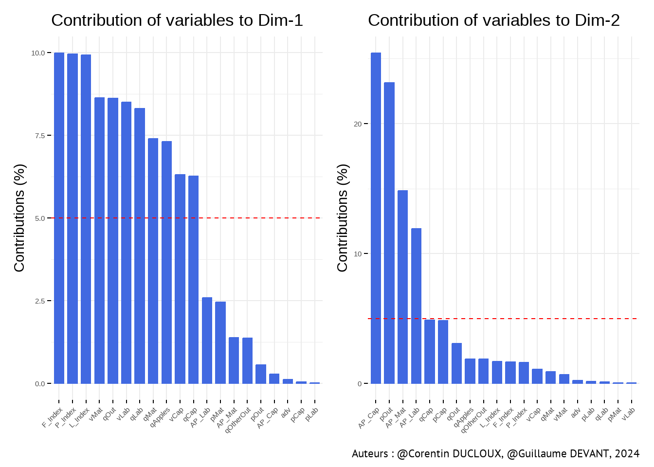 Ce tableau, en plus des visualisations qui vont suivre, permet d’établir que les productivités moyennes par facteur sont très différentes selon les producteurs. De plus, on s’aperçoit aussi qu’investir dans un facteur particulier peut être plus intéressant qu’un autre.