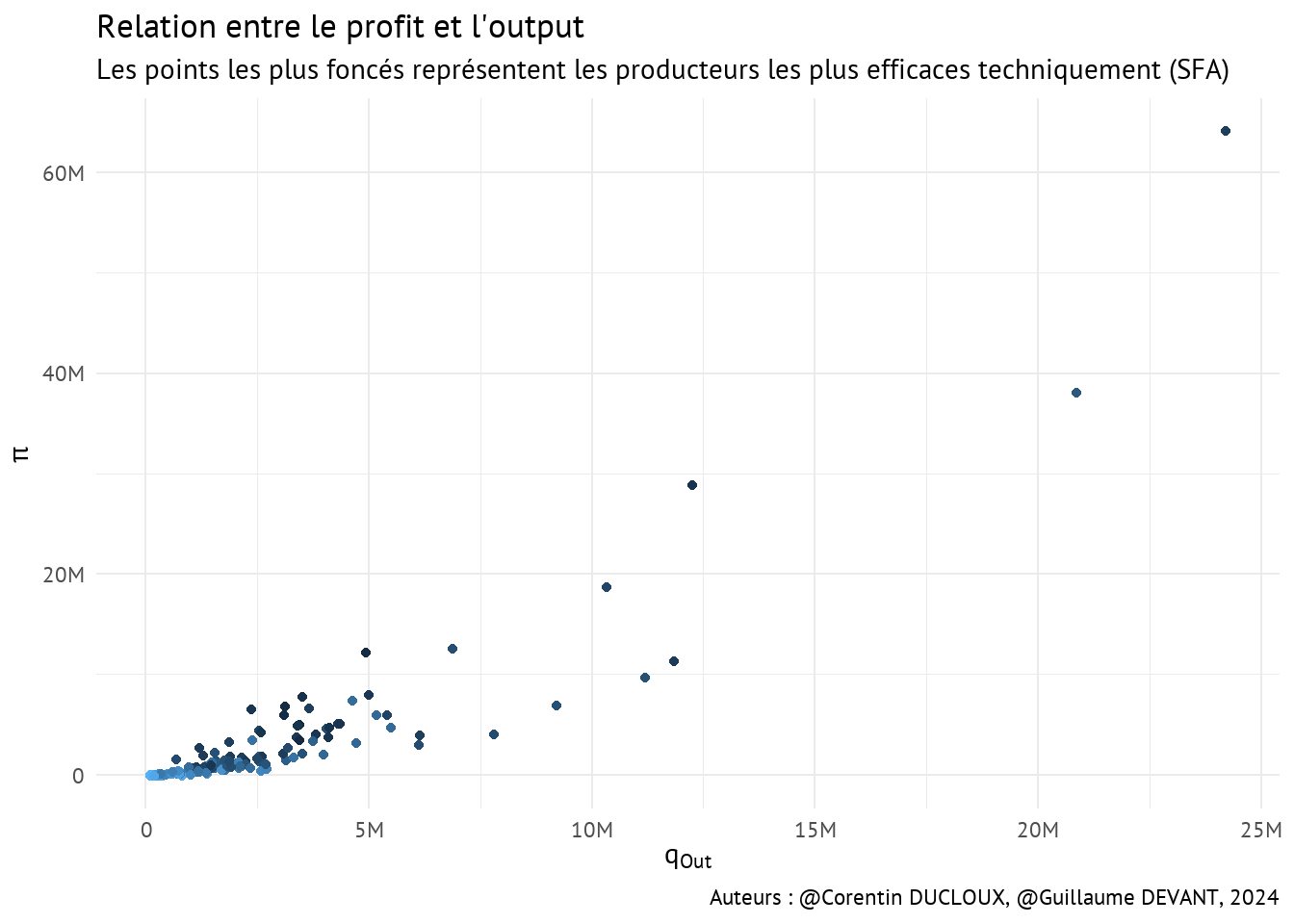 Nous pouvons aussi nous intéresser au nuage de points des profits et des quantités produites.
